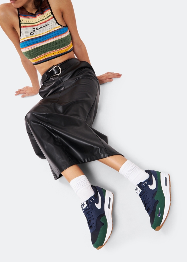 يُطرح سنيكرز إير ماكس 1 جورجي جرين من نايك بخامات من الشمواه والنايلون بألوان مختلفة مع لمسات مطرزة ونعل خارجي مطاطي وتوسيد أفضل وواقي كلاسيكي بنمط مموج ليُكمل أناقة هذا الحذاء المستوحى من الفينتاج.