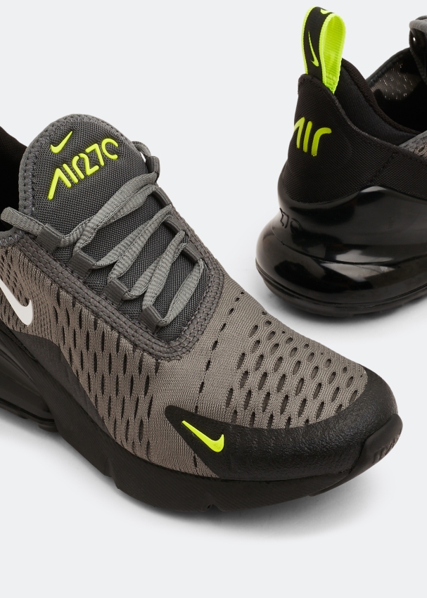 امنحوا صغيركم الراحة المثالية طوال اليوم مع هذا السنيكرز خفيف الوزن من نايك. يستند على وحدة "إير 270" ضخمة ويتميز بجزء علوي منسوج ومسامي، نعل خارجي مطاطي للثبات، شريط سحب لارتداء وخلع الحذاء بسهولة وتوسيد رغوي شفاف.