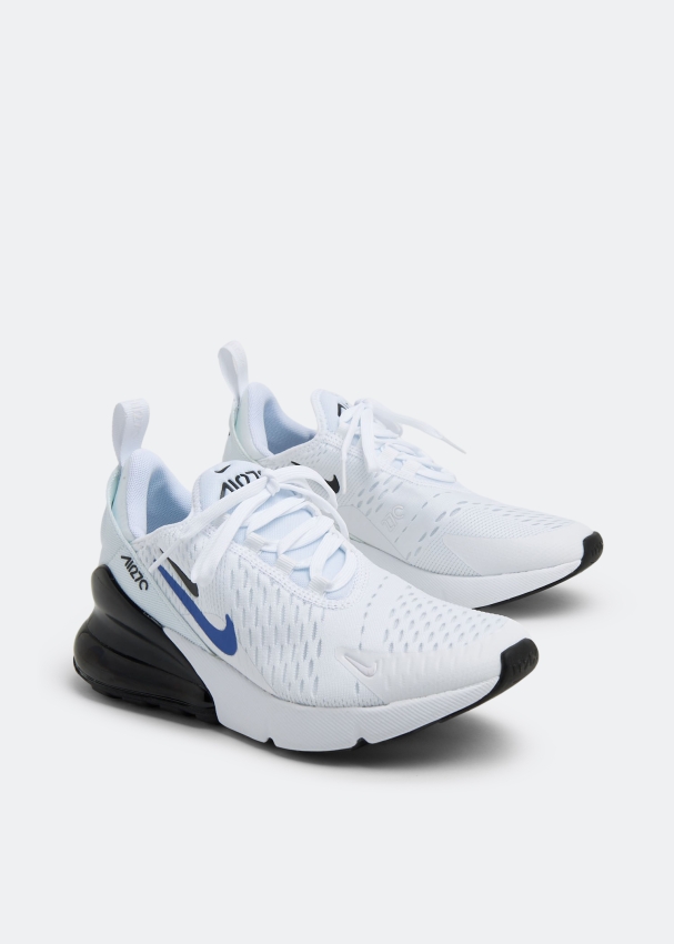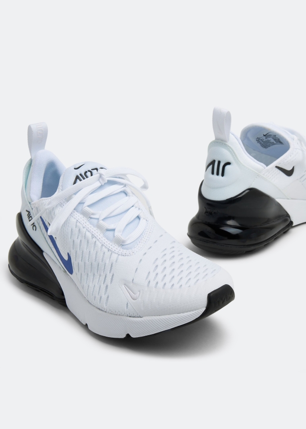 سيوفر سنيكرز إير ماكس 270 من النايك الراحة المثالية لصغاركم طوال اليوم بتصميمه الذي يستند على وحدة "إير 270" كبيرة. يتميز الحذاء بجزء علوي من نسيج مسامي مع نعل خارجي مطاطي للثبات، شريط سحب خلفي لارتداء وخلع الحذاء بسهولة وتوسيد رغوي شفاف.