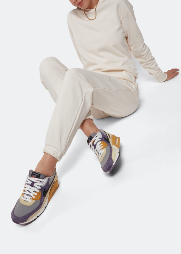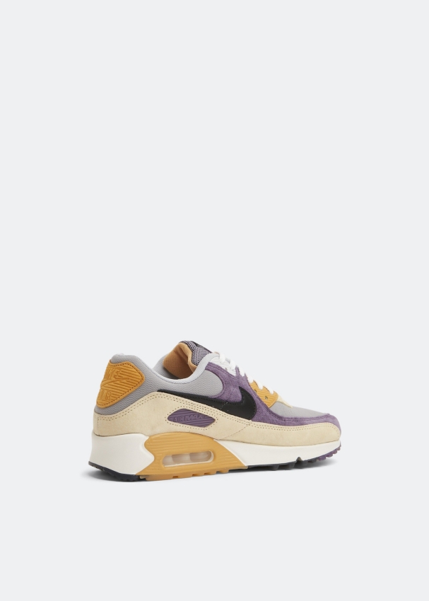 يأتي سنيكرز إير ماكس 90 الشهير من نايك بكتل لونية من "الليمون دروب" و"البيربل كورت". مصنوع من النسيج الشبكي مع طبقات من الشمواه ويمتاز بشعار نايك من الجلد على الجوانب ولسان شبكي بشعار العلامة بتصميم ريترو. يكتمل هذا التصميم متعدد الألوان بأربطة بيضاء ونعل أوسط سميك ونعل خارجي شبه شفاف.