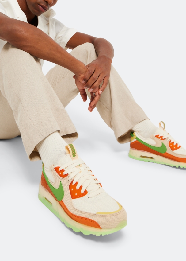 تُعيد نايك تقديم سنيكرز إير ماكس 90 الكلاسيكي بتصميم بلون "تيراسكيب" لا غنى عنه في خزانتك. يتميز بطبقات واقية متعددة الألوان مع طبقات من الشمواه وقاعدة من النايلون ونعل خارجي مطاطي ورباط للإغلاق.