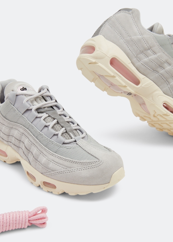 يأتي أحدث إصدار لسنيكرز إير ماكس 95 من نايك باللون جري فوغ. يتميز الجزء العلوي المصنوع من الشمواه والشبك بتصميم رمادي اللون ونعل متباين بلون حليب جوز الهند ولمسات باللونين الوردي والأسود في شعار العلامة على اللسان، فقاعات إير ماكس، أربطة إضافية وشعارات العلامة الشهيرة.