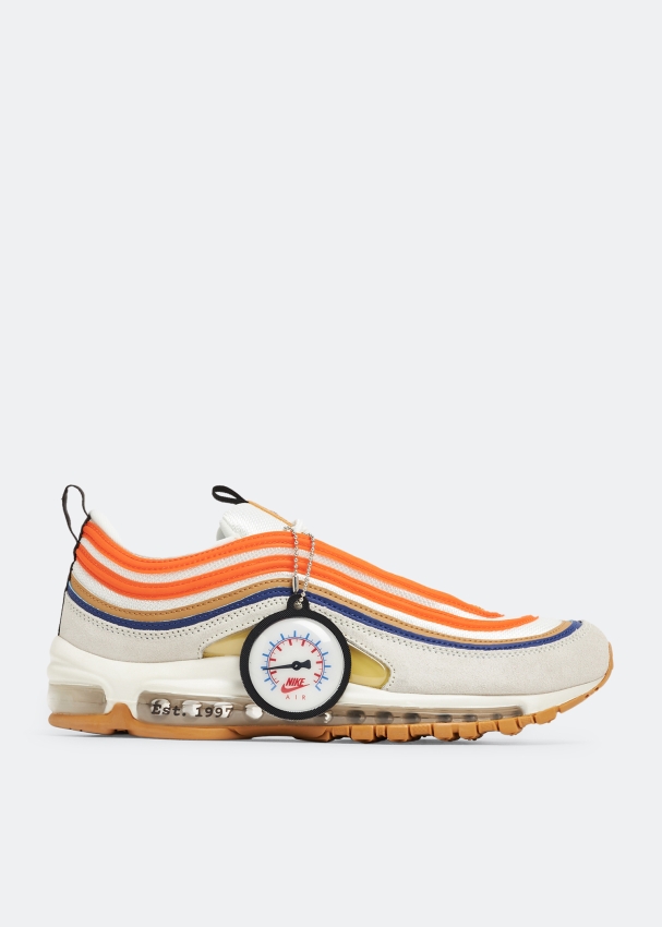 تكريماً لفرانك رودي الذي ابتكر توسيد إير الشهير، تُقدم نايك سنيكرز إير ماكس 97 إس إي مع ختم تاريخ الإصدار على وحدة إير وعلامة تعليق مقياس بارومتر وبطاقة معلومات عن اختراعات فرانك رودي. يتميز الحذاء بجيب هوائي شفاف على الكعب، نظام أربطة خفي، بطانة جورب مصبوبة ونعل خارجي مطاطي.