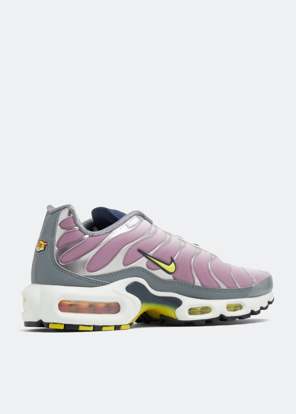 أضيفي لمسة جريئة إلى إطلالتكِ المستوحاة من أزياء الشارع مع سنيكرز إير ماكس بلاس أو جي فايوليت داست من نايك. يتميز بجزء علوي من النسيج الشبكي باللون الأرجواني المتدرج مع طبقة واقية وكعب من الجلد باللون الرمادي وتوسيد بتقنية "إير" ليمنحكِ الثبات الرائع والراحة المثالية.