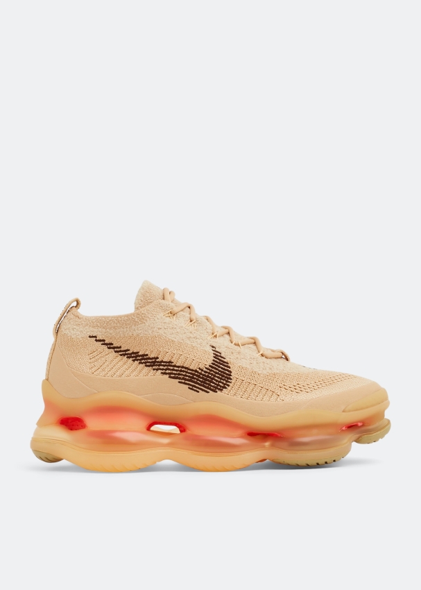 تُقدم نايك سنيكرز إير ماكس سكوربيون ويت بحياكة ذهبية اللون مع شعار العلامة باللون البني المتباين، بالإضافة إلى جزء علوي منسوج وشريط سحب ووحدة "إير-سول" سميكة لتوسيد رائع ومريح.